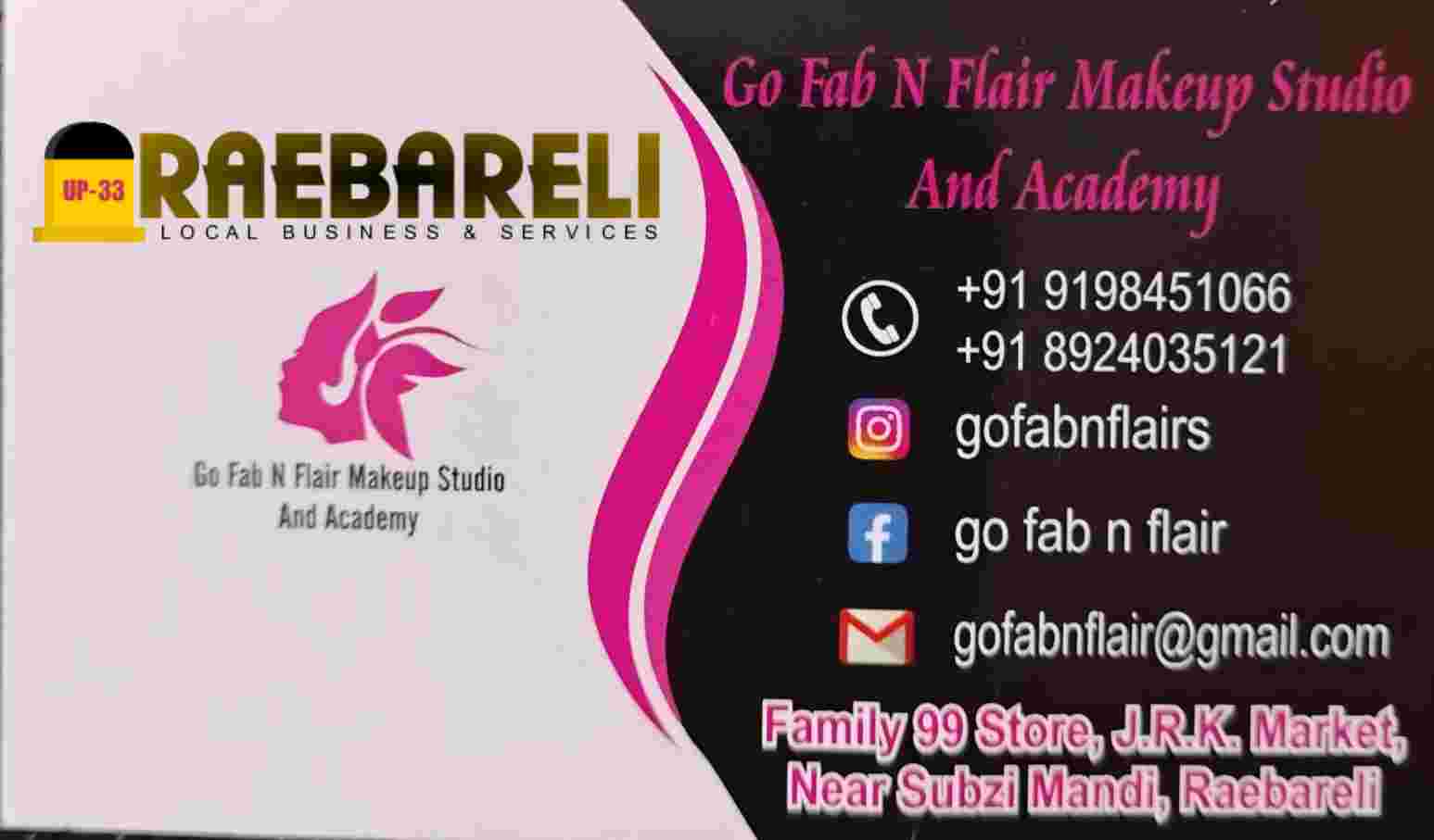 Go Fab N Flair Makeup Studio And Academy in Raebareli is a trusted name for professional makeup services and certified beauty training. We specialize in bridal makeovers, party makeup, and professional makeup courses designed to help aspiring artists build a successful career in the beauty industry.